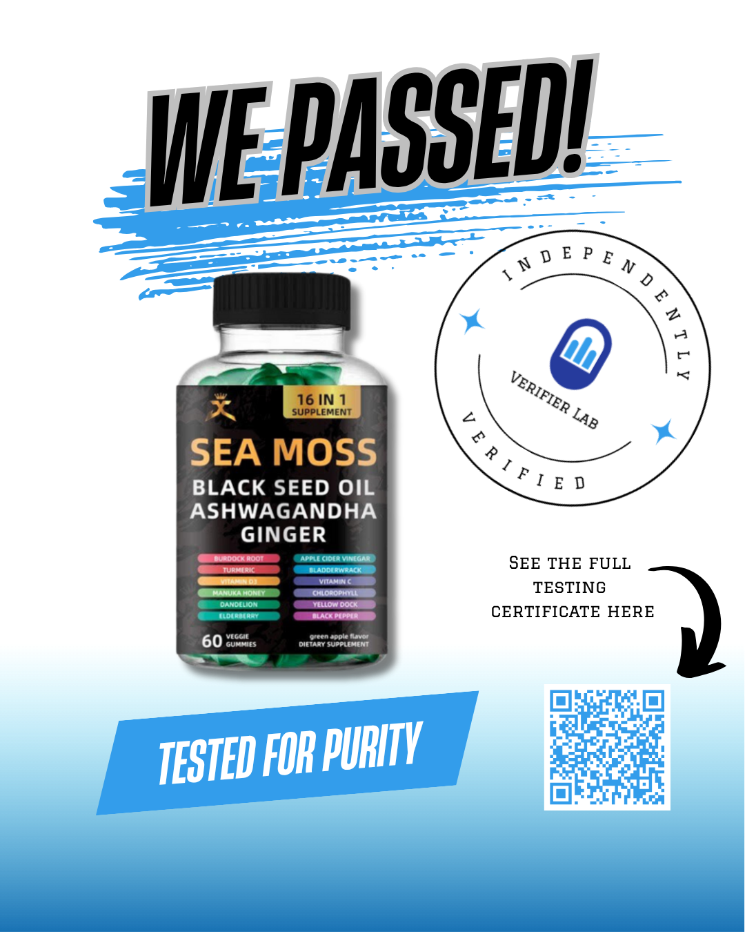 Our Sea Moss Gummies have undergone rigorous testing by Verifier Labs Ltd, and the results affirm our dedication to quality: