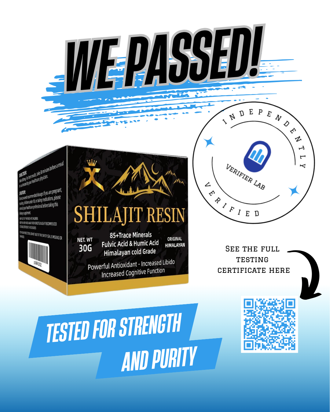 Our Shilajit Capsules have been independently tested by Verifier Labs Ltd, and here’s what the full lab report confirmed: