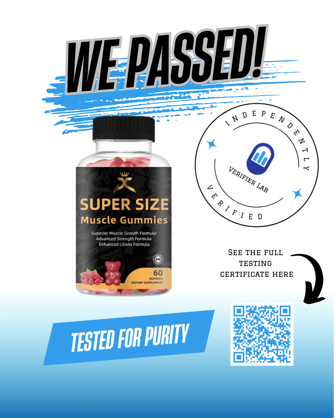 Our Super Size Gummies have been rigorously tested by Verifier Labs to verify potency and safety — here’s what the results showed: