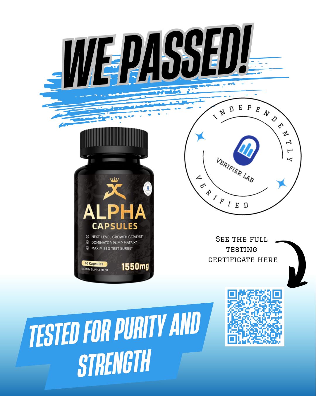 At J Clarke Sports Nutrition, we stand by our formulas — and we've got the lab data to back it up. Our Alpha Capsules were independently tested by Verifier Labs Ltd, and here’s what was confirmed: