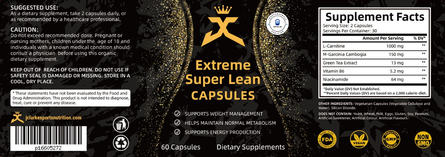 Extreme Super Lean Capsules are a high-potency fat-burning formula designed to support metabolism, energy, and weight management. This concentrated capsule format delivers powerful, science-backed ingredients to help your body utilise fat as fuel while maintaining steady energy levels throughout the day.