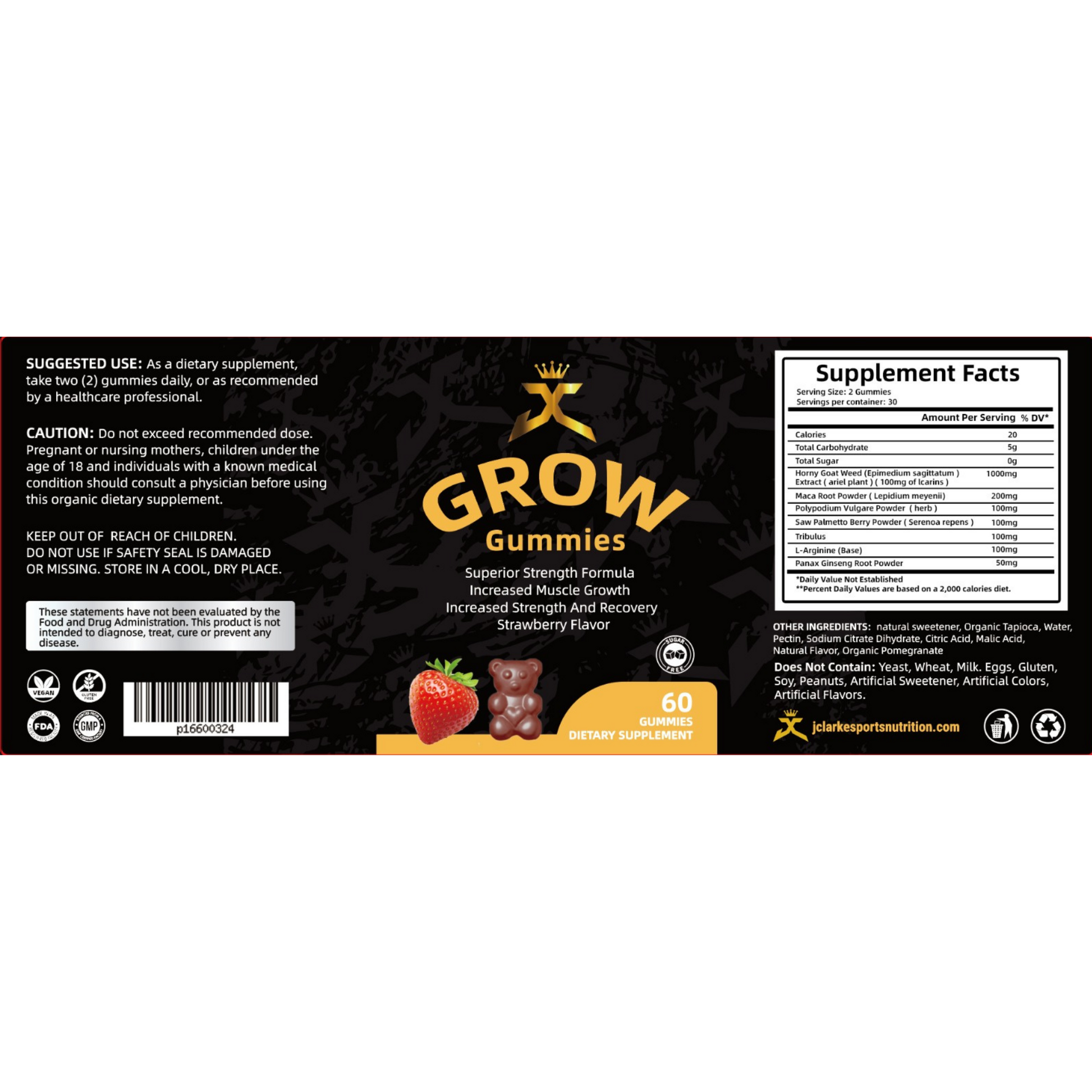 Sugar-free Grow Gummies deliver a potent blend of Tribulus, Horny Goat Weed, L-Arginine, Maca Root, Polypodium Vulgare, Panax Ginseng, and Saw Palmetto to boost muscle performance, stamina, and vitality. Designed to enhance hormone balance, recovery, and drive.